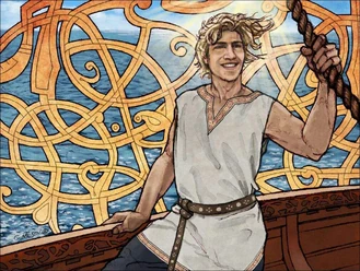 Baldr (also known Balder and Baldur) is the god of light, joy, purity, beauty, innocence, peace, and reconciliation. He is the second son of Odin and Frigg. His wife was Nanna, the daughter of Nep, and their son, the god of justice, was named Forseti.