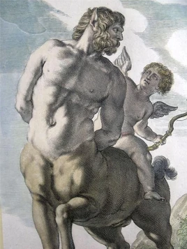 The hero, gasping for wine, grabbed it from him and forced it open. Thereupon the vapors of the sacred wine wafted out of the cave and intoxicated the wild centaurs led by Nessus who had gathered outside. They attacked with stones and fir trees the cave which was located in the neighbourhood of Malea. Heracles was forced to shoot many arrows (poisoned with the blood of the Hydra) to drive them back. During the assault, Chiron was hit in the thigh by one of the poisoned arrows.