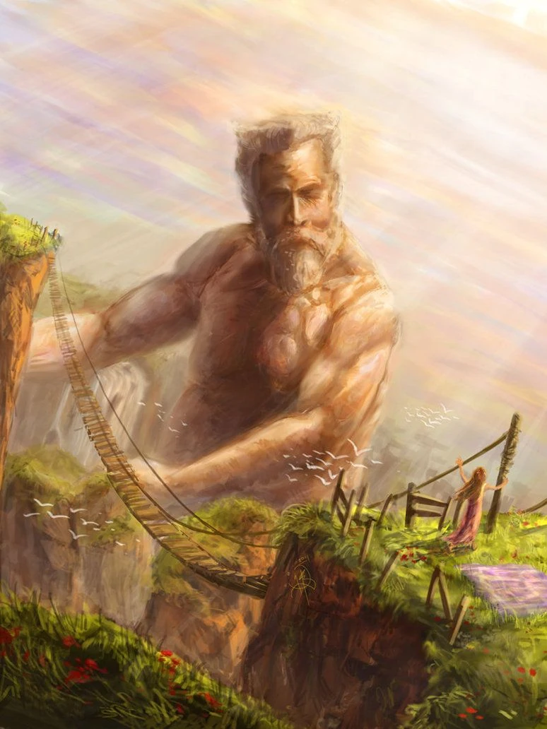 Back then, Giants were the Earth's guardians alongside the gods. It was important that one giant must be sat atop the tallest mountain, which was a long-forgotten peak in the north at all times. On top, they would just sit and stare, being on "watch duty" for anything that might attack the Earth from up above. Young giants mostly served as guardians, and their guard duty could be a millennia-long duty. However, as time passed, space for the giants started to get smaller as humans appeared and built their cities and villages and the relationship between the giants and gods started to grow more strained. The reason why is because the gods yearned for the mortals' worship and grew anxious over the idea that they might instead worship the giants so the gods drove them away. This provided the Ogdru Hem with the opportunity to attack and take the Earth for themselves seeing as the gods are in great disarray over their arrogance and hostility towards one another.