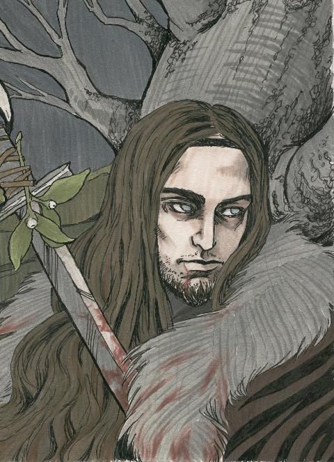 Baldr, who is portrayed as being a charming, beloved, innocent sufferer, had dreams that foretold his imminent death. His mother, Frigg, went around and obtained oaths from everything in the world that they would not harm her son. The only being she omitted was the mistletoe, as she thought it to be too small and harmless a thing to be of any real consequence in this matter. When the wily trickster Loki discovered this oversight, he fashioned a mistletoe spear.