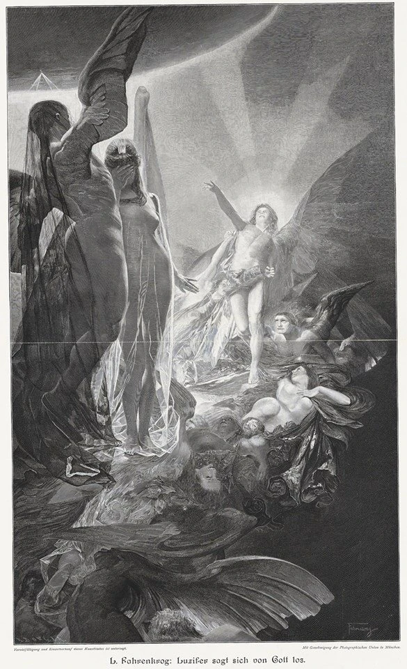 Throughout the eons, Lucifer had come to see the corruption that lurks within the cogs of his father's grand plans for the universe and its inhabitants. Being close with God lead to being entrusted with the grand schemes of creation. Whenever these plans would be shared, Lucifer would always spot something that he would disagree with and argue with his Father only to be silenced and admonished each time. The more Lucifer argued with God the further he began to stray from the light and grow rebellious.